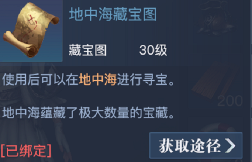 1、各位冒险者在等级到达30级之后,才能在背包中点击使用地中海藏宝图,跟随指引探险寻宝。