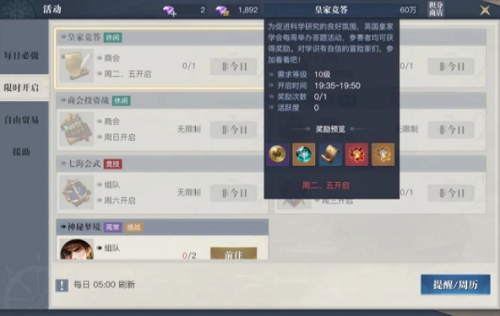 1、参与皇家竞答,积累日常活跃度,解锁白银密令奖励,提升各大地区的探索度,可以轻松囤起一船舱的地中海宝图。