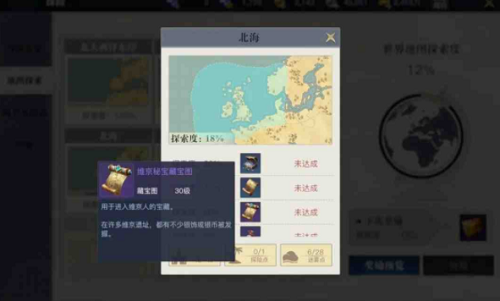 2、紫色的所罗门王藏宝图、维京秘宝藏宝图、圣米格尔藏宝图,需要寻宝者的东地中海探索度、北海、非洲西部探索度到达60%才能破解藏宝图的宝藏线索。
