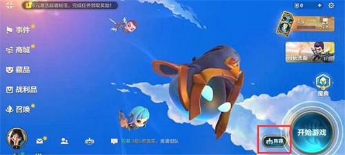 1、进入游戏之后,在游戏主界面右下角开始游戏的旁边有一个阵容;