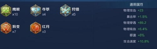 第一套铭文:3红月亮+7变异,6狩猎+4捕捉,10鹰眼。