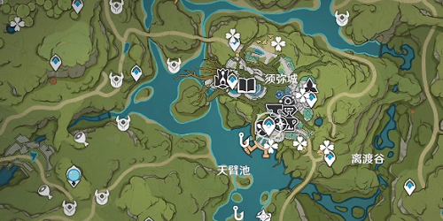 1、首先我们需要打开地图使用传送锚点来到须弥城下方的锚点这里。